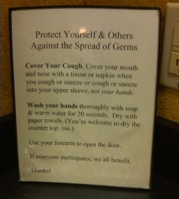 The owners sixth sense of the future was evident in their bathroom signage – prepping for a pandemic in 2011: