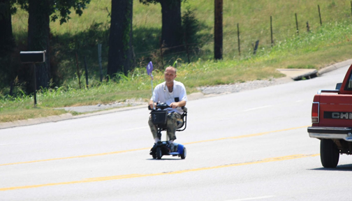 In the middle lane of a busy four-lane highway, there he was. This Arkansas resident just rolling down to the store, on a not quite highway legal vehicle. This may be a common sight – we were in a pretty rural town after all. Motorized vehicles or public transit might not always be accessible.