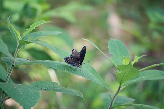 One benefit of a cabin far out in the woods – quiet. We did not wake up early. Aware of a lot of exploration to be done, exhaustion took priority. Emerging from our comfortable bed into the Arkansas swelter, we determined the screened in porch was perfect. We would come to appreciate that more in the evening, when the army of central Arkansas insects and spiders multiply and attempt to land on, cling to, and in some cases suck blood out of anything not covered in DEET. For now, we only encountered the less aggressive members of the arthropod family as we wandered around the acres on this property:
