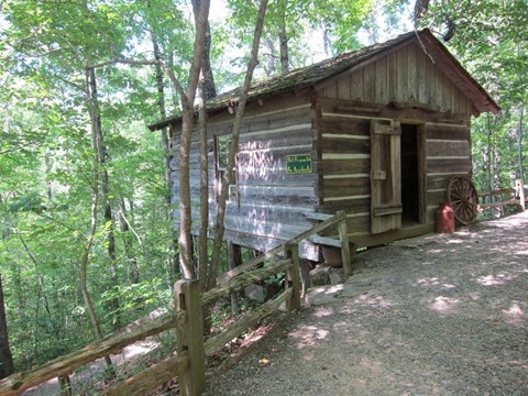 Bike trails, had we found them and had we not been too lazy to remove them from the bike rack, would have been free. Instead, we took an expensive walk into the Arkansas wilderness. As we headed towards the trail, we stopped to explore the random items in this creepy cabin dangling off the edge of the trail.