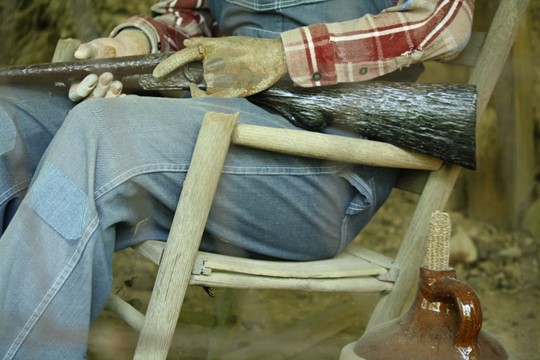 Is the man missing his wooden fingers guarding the corn the cob? Sure looks that way. We supposed he had all fingers required to pull the trigger, so the corn cob is safe for now.
