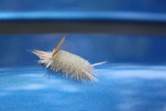 The first of many (many, many, many …) insects to attach themselves to the Kia Spectra – this one would seem to be poisonous but the internet says it’s just a friendly Banded Tussock Moth caterpillar: