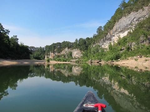 Even scattered groups of noisy people do little to detract from the gorgeous scenery and relaxing flow of the Buffalo. Yes, there are probably more scenic rivers, more exciting rapids, better canoe trips, more isolated and wild places, but keep in mind, we’re from north Texas where rivers are primarily sluggish, muddy, cow-crap filled sloughs winding between algae-clogged lakes with wheat fields stretching out from the banks. Additionally, we had spent much of the prior decade or more raising children with limited funds and means to explore such places. This was shaping up to be a perfect day – a clear flowing river threading around ancient rocky cliffs with wide blue skies and no obligations, no schedules, and enough booze in our cooler to keep us happy for days (or at least the afternoon) …