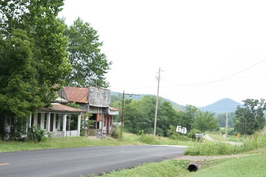 Somewhere around Hagarville, we came across more crumbling storefronts, including this one with a sign that appears to read: AB Adkins, est. 1938.