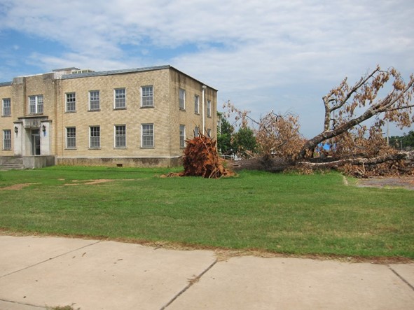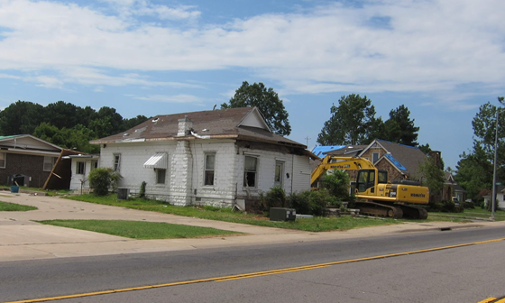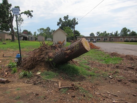 After a sharp descent past Hagarville, the Ozark National Forest ends and the scenery fade into flat, straight highways and residential areas. The first town out of the forest is Clarksville, a little spot sitting right on I-40. In any other year, we might not have paid much attention to this little place, but western Arkansas appeared to have had a traumatic 2011. Storms evidently ravaged the area in the spring, and the result of an EF4 tornado that swept through Clarksville and surrounding towns on May 25th, a little over a month before our trip, was clearly visible.