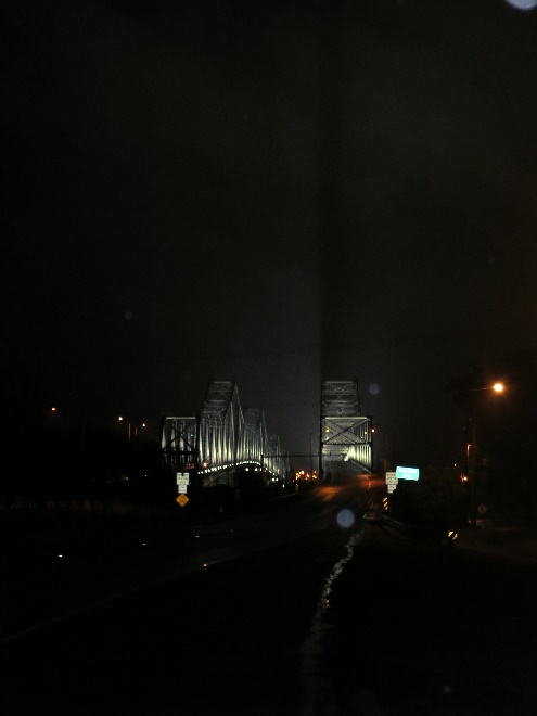 When we finally got to the Mississippi border, it was after midnight and we were exhausted. Not so much that we couldn’t stop to capture evidence of our midnight ride over the Mississippi: