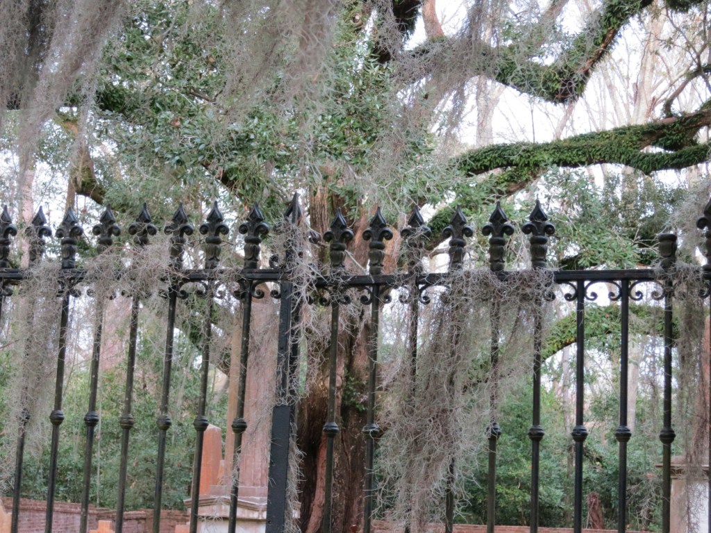Quiet, definitively Southern burial ground, draped in Spanish moss and carpeted in leaves around the palmettos, with former Natchez residents buried in between thick tree roots.
