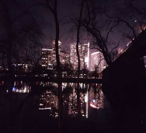 The influx of money does provide some impressive visuals after dark. As we headed back, we enjoyed the view of Austin reflected in the lake.