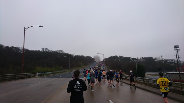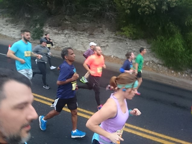 The first long leg of the run is a gradual uphill as you work your way into whatever place in the pack you expect to hold. Turning around and rolling downhill for a few miles is a nice break, passing local coffee shops, tire stores, and other runners deciding bushes are perfectly acceptable places to take bathroom breaks. Turning the corner around mile 7, there’s a deceptively flat stretch passing the parks and bathrooms with indoor plumbing instead of twigs and berries. For the uninitiated, all that mellow running in the first 9 miles is intended to lull you before you face the Austin hills you forgot about. With the crowd slowing to a crawl, we managed to hang on to some energy and jog to the top of the last hill heading into downtown. From there, it’s a couple of turns that leave you asking “where is the damn finish line?”