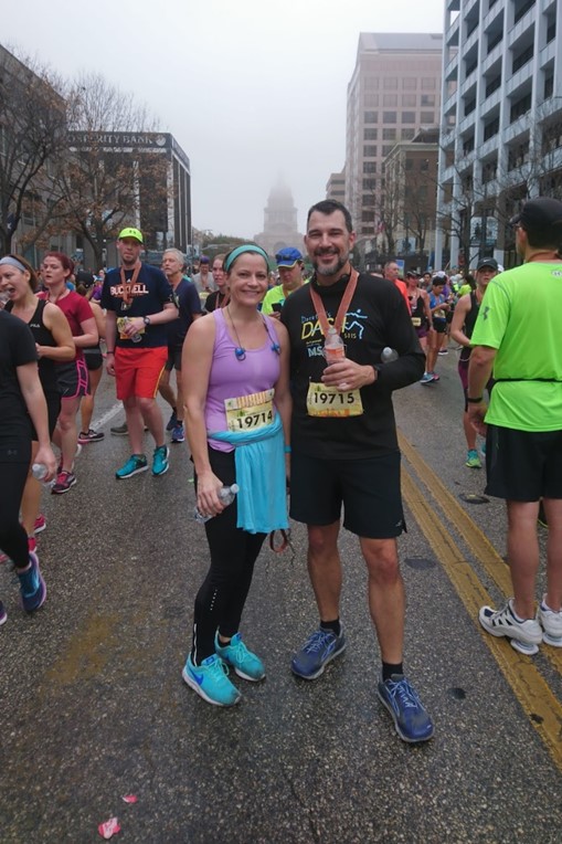 In 2018, we decided we needed some specific goals oriented around physical activity. The year before had been chaotic, with work and kid schedules. Anticipating a more routine year ahead, we decided it was time for stability. Also, aging bodies needed something to offset excessive food and alcohol. Simple math – more (many more) calories need to be burned to compensate for diets like ours. Someone recommended the Austin Marathon – the half would be 13.1 miles of hills, starting in the city, wandering around the river, and finishing up downtown. Easy enough, said the sacrificial victims …