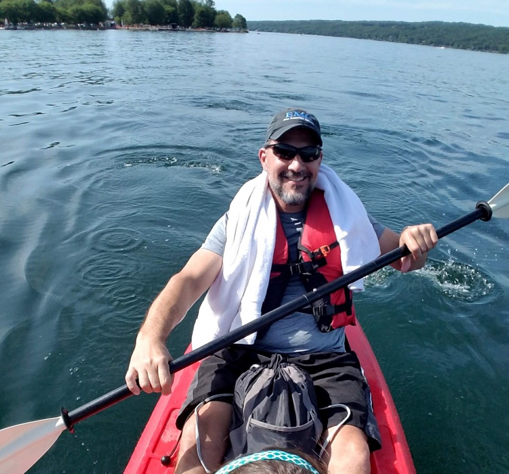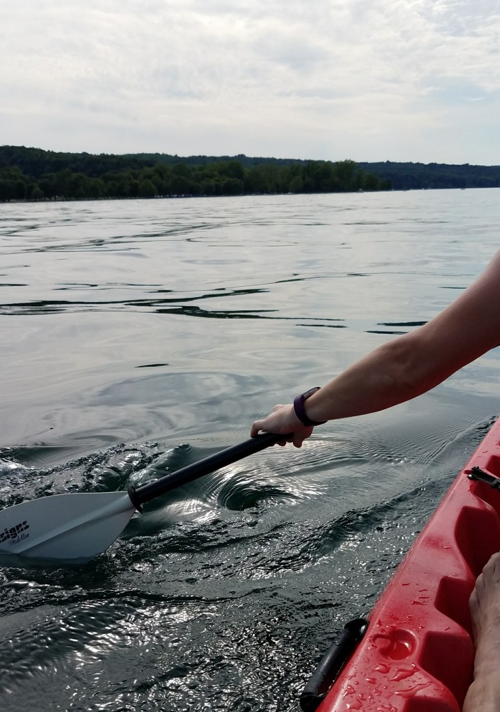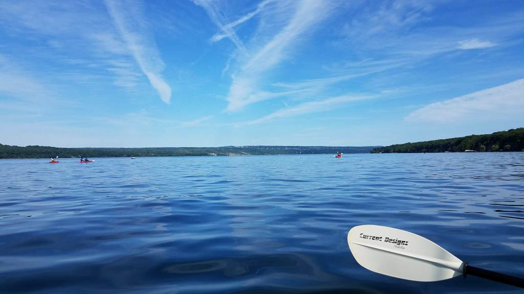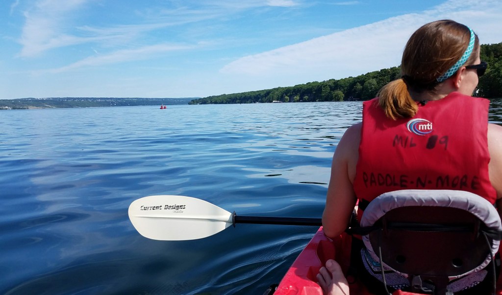 Remembering our dreams of cooling off in the lake, we stepped into the water next to the kayak. Suddenly, the idea of immersion lost every last bit of its appeal. Texans are used to lakes the temperature of bath water and the color of coffee or pea soup. Lakes in upstate New York are the temperature of the deadly cold of outer space and the color of ice. Having determined that we’d see the lake from inside the boat instead of under the waves, the kayak did not disappoint, and we spent the next hour paddling around Cayuga Lake. Not a bad way to spend a Saturday afternoon, aside from the periodic splash of liquid nitrogen across our knees when a wave slapped our little boat.