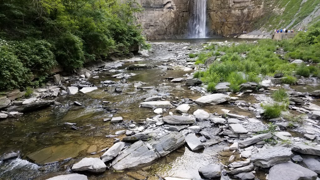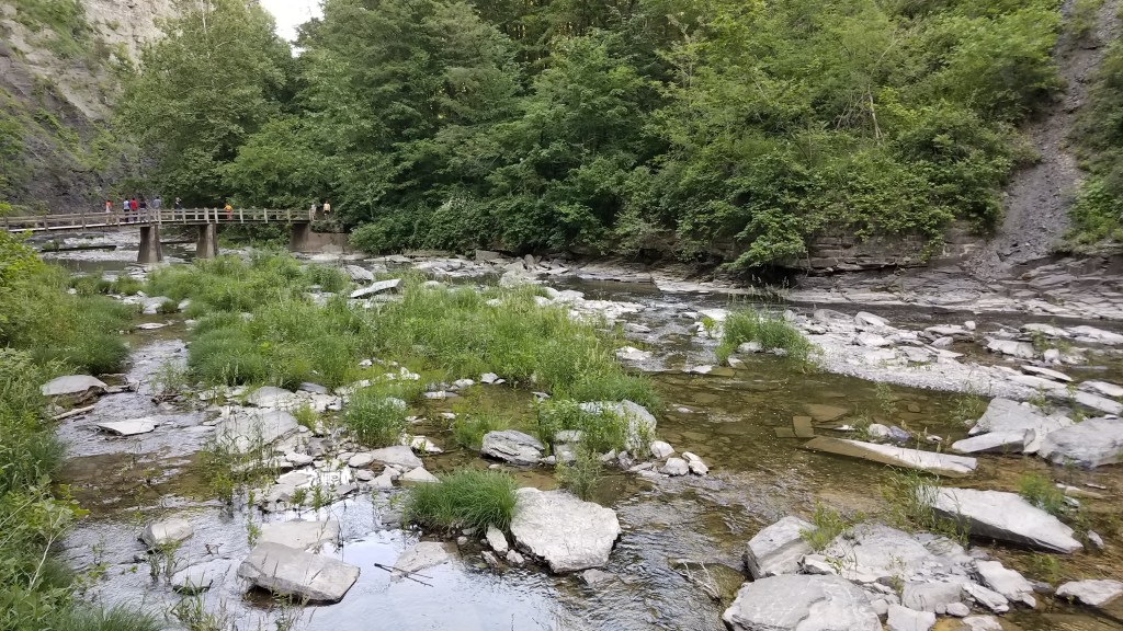 Turning across the highway, we rolled into the parking area to find Buttermilk was packed with noisy New York families, all attempting to squeeze up a narrow, rocky trail to swim in a tiny little spot with a waterfall. All seemed to be simultaneously yelling at their children while attempting a “family fun” day in Buttermilk State Park. While the accents were different, this was starting to feel like a visit to Six Flags in our home state – jam-packed with too much humanity in too little space.