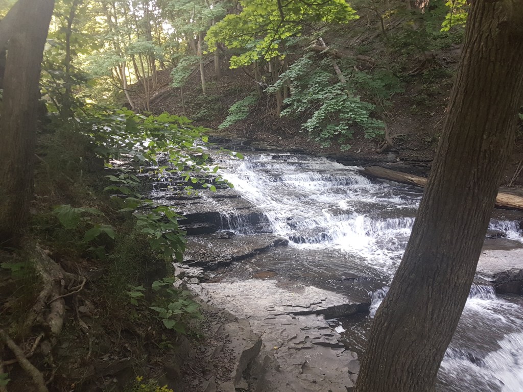 Peering up the road and seeing a disappearing shoulder and a steady line of impatient New York drivers, Treman Park and its waterfall was canned in favor of Buttermilk Falls State Park. At least on the map, it looked like a closer spot and a much shorter ride, which would ideally mean more relaxation and less roadway insanity.
