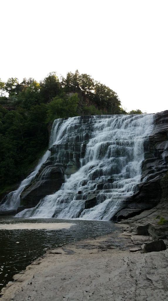 We finally hit the top of the 15-mile long hill, and turned onto a potentially deadly downhill roll to the shores of Cayuga Lake. Sunburned, tired, hungry and thirsty, we arrived at our destination – Taughannock Falls State Park.