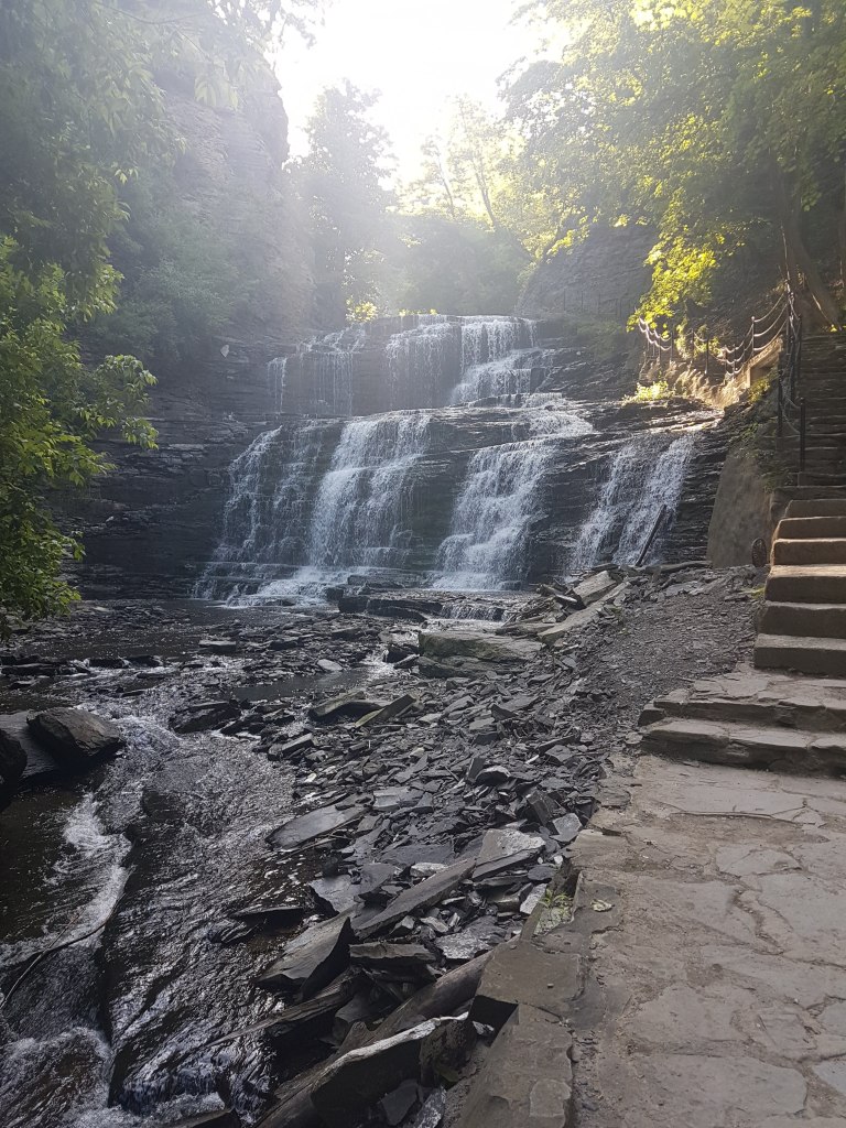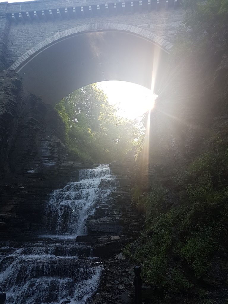 The run included a trek down Cascadilla Gorge Trail, which runs along Cascadilla Creek. The waterfalls and scenery distract a runner from the pain of five miles under an increasingly brilliant sunrise and gradually fading hangover.
