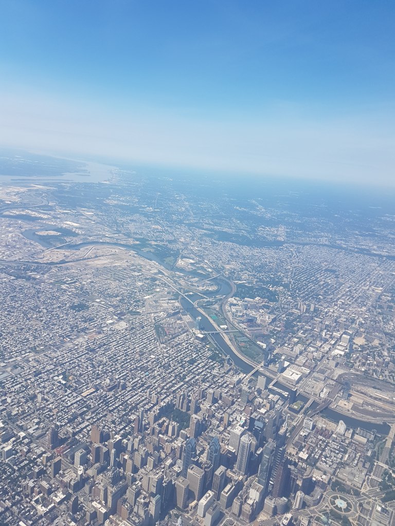 Clear non-turbulent air on the way to Philadelphia allowed for some pretty nice photos from the plane, before a short transit through the airport. Time for the final leg home – we hadn’t conquered the Ithaca Half and would spend quite a few months of idling while injuries resolved themselves. That said, our visit was fun, activity-filled, and a decent substitute for our original plan. We’ll try it again.