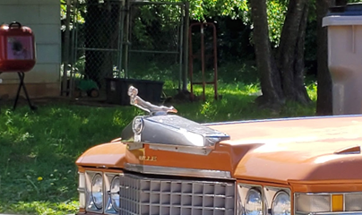 First walk stop: Lucy Park in Wichita Falls, where we found some decent walking trails, including a weirdly misplaced pagoda, and an interesting hood ornament in a nearby neighborhood.