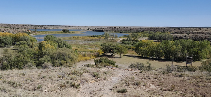 If you were to follow the Caprock Trail southwest, it goes all the way to Turkey, close to Caprock Canyon State Park, but that would go on the Bucket List, with notes to target sub-freezing weather if possible (the flies do eventually retire for the winter). There’s even an old rail tunnel on the way filled with bats. Someday, we’ll have time to do these things.