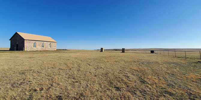 Staring at several more hours of travel to Trinidad, it was time to head west through Kenton, with the intention of taking 456 through Branson, entering Colorado from the south side. As magical as Google Maps often is, they do a pretty crappy job of notating road closures unless you’re also using Waze. This gap bit us again just outside of Kenton, with a “road closed” sign blocking what looked like a very scenic path across the hills we’d entered in the Black Mesa area. Defeated, we turned south towards Clayton on 406, hooking up with our usual route in near the oh-so-scenic Love’s Travel Stop there. Behind schedule at this point, you would think this would deter us from further stops – not so. Turning off the main road past Capulin, we spotted this lonely church and cemetery standing next to the road, and hopped out for photos.