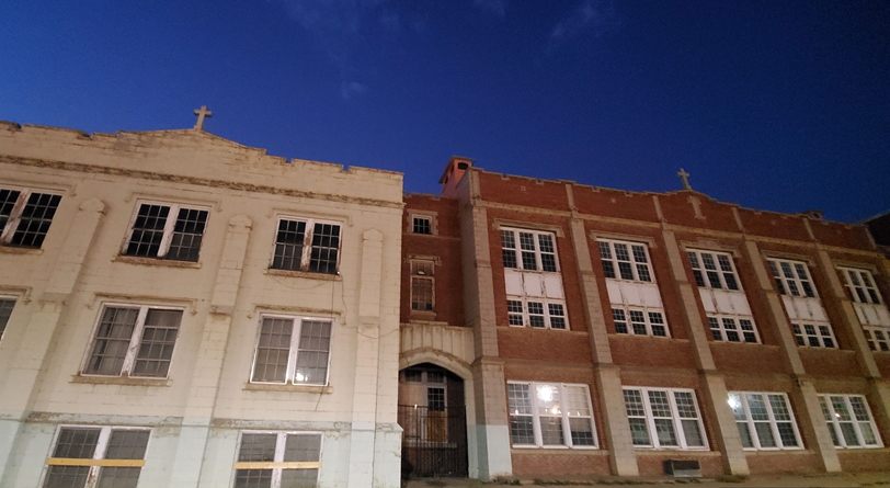 Arriving in Trinidad after dark, slowly lifting pandemic restrictions meant we still had options for food. Las Animas was our first choice, but they were closed this Sunday evening, so we were left risking BBQ in Colorado. Not to be snobby, but coming from Texas, the bar is pretty high for BBQ. Sadly the Trinidad Smokehouse, while not terrible, did not get very close to that bar. Being very hungry, we were tucked in at a tiny half table hanging off a pole in the basement bar, made a bit more special by the reminder that we were still working through our 2020 resolution to eliminate alcohol from our diet. Dinner consumed, steps were needed – we took a quick walk around downtown, stopping to grab a photo of another creepy church before getting back in the car …