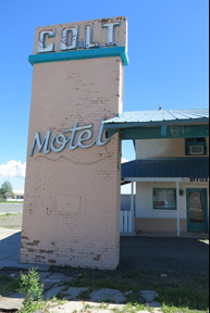 After our short visit to Colorado, we headed south, hoping the weather would cool off – by the time we got to Raton, we were out of the heat. In the interest of capturing more American decrepitude, we took the scenic route through Raton. After scoping out an abandoned and partially inhabited motel, it was time to head south again.