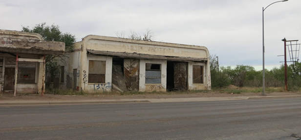 South of I-40, you’re into eastern central New Mexico, where not much has been happening for quite a while. Our route led us through Vaughn – a good place for a stop in terms of location, although not exactly bustling, as it has evidently been for decades. Originally a watering spot for cattle, it later thrived as an intersection between busy railroads. Now, it’s a stopping point for weary travelers who somehow find themselves on these lonely highways in eastern New Mexico. Vaughn still has some residents, and several operating businesses, but one wouldn’t know that by driving the main throughway, full of abandoned motels, restaurants and storefronts. Obviously, we had to explore the crumbling buildings and stores.