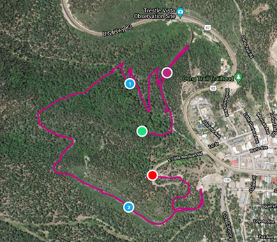 After a more comfortable night’s sleep, we gave up on our planned pre-sunrise arising – we figured this was okay, as we’ve seen a few sunrises in our time together, so missing one wouldn’t kill us. However, a bear might. Revisiting Black Bear for coffee, it was time to get some running or hiking in. We decided on the Osha Trail to get some outdoor time before spending the day in the car. Given less than optimal planning, timing the hike was complicated, as one of us had to make squeeze in a work phone call. Heading into the woods on a beautiful trail around the hills north of Cloudcroft, after 20 minutes, the work-committed party had to double-back and find a place for work interruptions to commence.