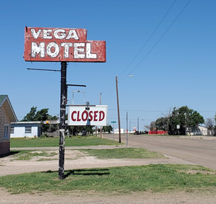 The road to Vega was straight, but rolling, and as the Kona traveled up each rise, we kept waiting for the yellow light to go red. We got down to 1 mile left in the tank as we floated on fumes into the first station at a deserted intersection in Vega. We both let out a deep breath, relieved that we avoided the potential stranding on the side of the road in a remote location.