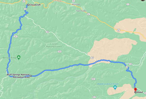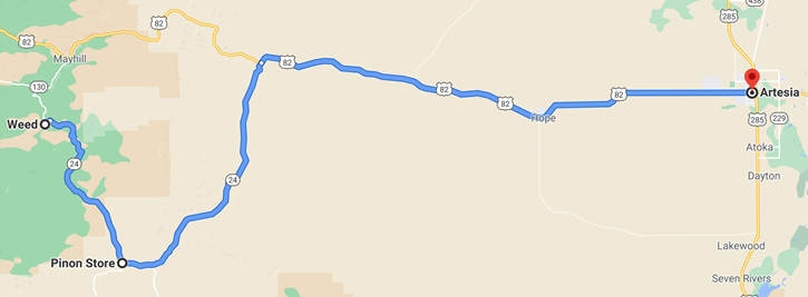 Having tanked up on gas, sugar, and fat, we said good-bye to Cloudcroft and headed southwest through the forest. Instead of taking the boring two-lane and predictable roads towards, Texas, it was time to see if we could get lost. There’s no way we would skip a town named “Weed”, so Google was aimed there, pointed along the least traveled roads we could see on the map.