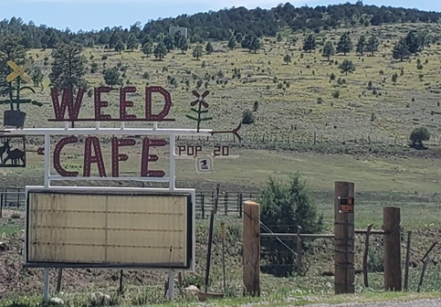 The famous Weed Café was not open, and it appeared to have been closed for quite some time. We guessed these small mountain towns and their businesses are not doing well during the time of COVID, especially here in NM where masking and travel restrictions were much tighter than other states.