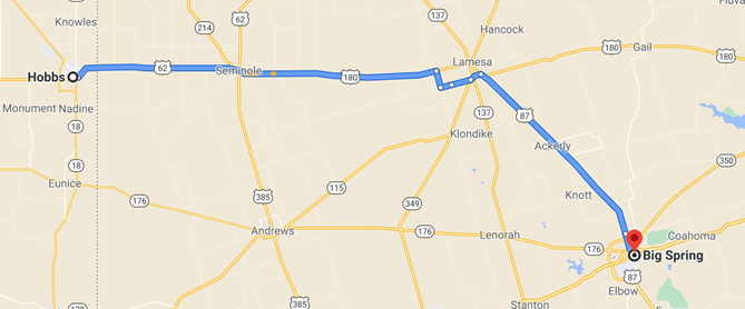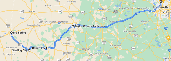 Having stayed at another rental managed by the same people in Big Spring during a prior trip, we had moderate hopes for the location. Morning exploration of the property showed that this one was not quite ready for prime time, despite a humungous dining room table and an amazingly comfortable bed. A morning trip to H.E.B. was required to acquire coffee, a coffee *maker*, soap, shampoo, and other random items which are typically basic equipment at Airbnbs. Testing our ability to work from a random living room, we made it through the day, then packed up, left the house, washed the Kona and grabbed coffee on the way out of Big Spring.