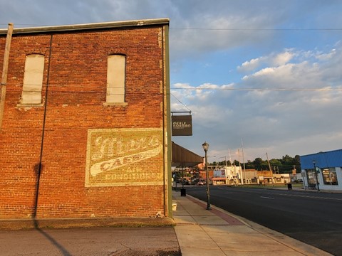 Steps had to be acquired so we squeezed in a quick walk, capturing some of the aging buildings in downtown. Daylight was limited and we still had a long way to go – somehow it was 7pm, after an 11am departure from home. Our usual moseying pace, the scenic byway, and several curiosity stops had considerably extended this trip.