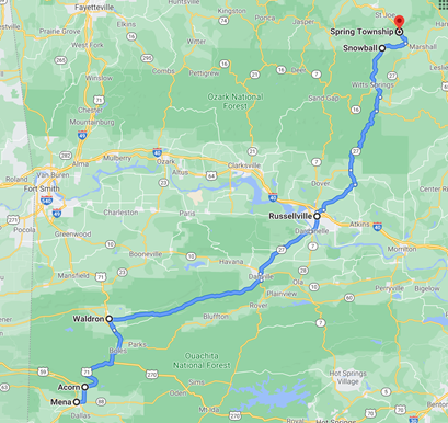 We picked Arkansas as a summer trip location randomly in 2011, having spent quite a bit of time south, southeast, and west of the home base on prior road trips. Stretching our legs a bit, we spun the compass (okay, we looked at Google Maps …) to see where we could get to in a four-day holiday weekend without spending the whole time in the car. At the time, AirBnB was still a dream in some Silicon Valley propellerhead’s brain – we had VRBO and Home Away and “bed and breakfast near …” in Google. Neither of us having been in Arkansas, and calculating we could tolerate what looked like about 7.5 hours of driving, we tripped over a 100 year-old farmhouse that was now a vacation home in the ghost town of Snowball.