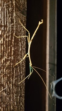 As always in Arkansas in the summer, insects (flying, crawling, buzzing, biting, eating each other) were everywhere. The best example this trip was the walking stick staring at us from the door frame as we dragged our bags inside. We bid him goodnight and turned in.