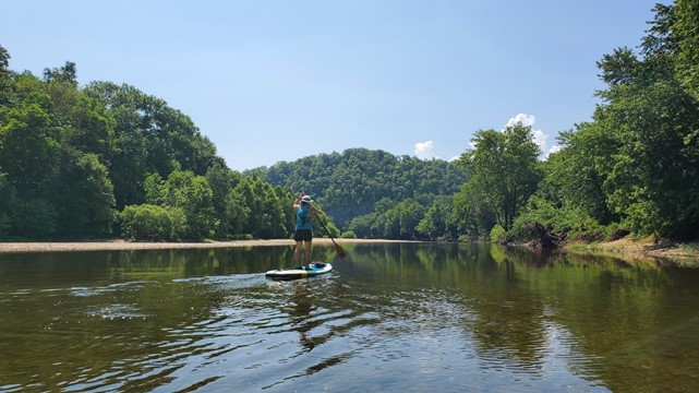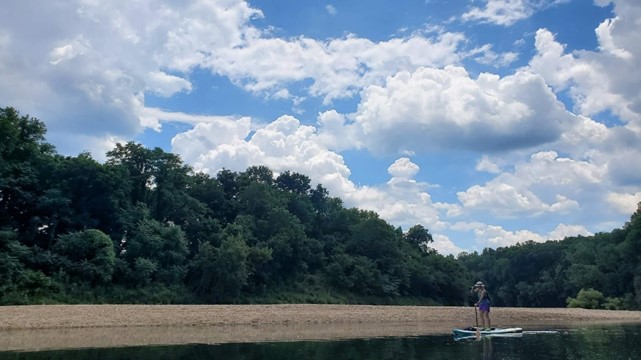 We’ve used a mix of two-person canoes, and one and two-person kayaks in the past, depending on the mix of kids, adults, and who brought a friend with them. These were all fun, and gave us experience when it came time to buy gear. We started with two single-person kayaks, but one of our parties is demonstrably coordinated enough to handle a stand-up paddleboard. Having braved the Llano River and Lake Alan Henry (including West Texas wind and chop), the calm of the Buffalo seemed like an easy ride.