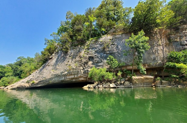 Sweating, we loaded bikes and put ourselves in the car for a quick stop back at the cabin. Again, we refrained from napping. There was still daylight and we were hungry. A quick change of clothes, and two boats on the car, we headed back toward Big Spring for more barbeque. We couldn’t resist another trip. We were guaranteed good food, and it was on the way to our next destination, so why not? Service was quick despite more crowds today, and we were able to fill our bellies before heading out for another paddle expedition. We didn’t have an exact location in mind but intended to explore the area around Bull Shoals Lake, stopping at a few ghost towns along the way.