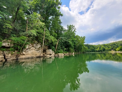 Watching the underwater wildlife is almost as interesting as the cliffs towering over the river – everything from schools of tiny minnows to fat carp and bass slumming along the river shallows, and plenty of bugs and other river denizens to look for. Some of the best times in the trip are taking a break from paddling to jump in the river for a sometimes chilly swim, grabbing something to eat and just unplugging for a bit.