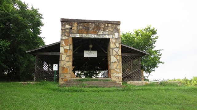 We explored the tiny ghost town, including parts we hadn’t seen the first time. Snowball High School was constructed in 1938 and closed in the 1970s due to declining enrollment. At that point, students in the area were transported to Marshall for education needs and the high school stood abandoned in the middle of town. Online research indicates it was demolished at some point in the early 2000s, but the entryway was preserved and transformed into a pavilion.