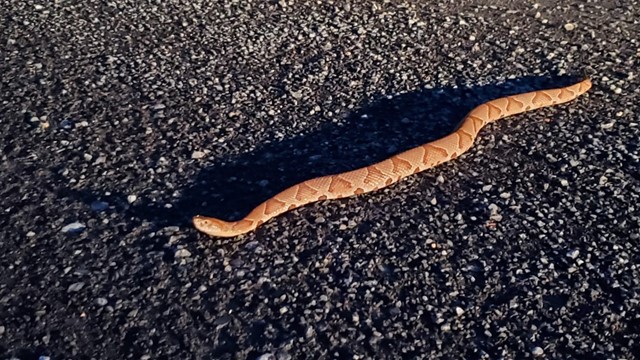 Well, almost. A quarter mile from the cabin, we spotted something slithering across the road. Curious, we pulled the car over and got out to investigate. Having never seen one of these outside a herpetarium, one of our party did recognize something you don’t necessarily want to pet, or accidentally step on in the leaf litter on a hike. Just a little copperhead, trying to find its way in the dark. A cautious scattering of a little gravel its direction encouraged it to get off the road, and went on our way.