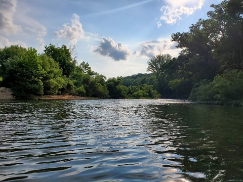 On our way into Yellville, we noticed a creek running under the bridge going into town. There were a few locals fishing from the bank, and it looked like a nice peaceful place to paddle. We stored the location in Google, but kept moving north to Bull Shoals to try for a better spot. We found ourselves wandering through a generic resort town, something similar to Ruidoso in New Mexico, a cheap lake location without much character. At Bull Shoals White River State Park, we scouted out the water access points. This location is directly beneath the dam, so the river is flowing fast, maybe 7 or 8 miles per hour, way too fast for our open water skills. Given an absence of other kayakers and not wanting to to end up floating to Missouri, we opted out of this location.