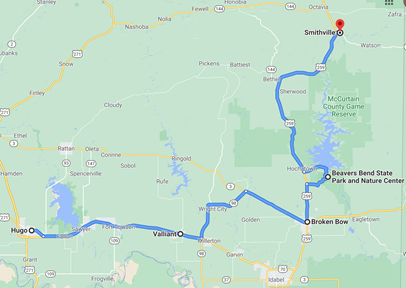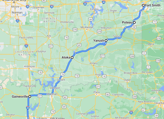 We took the scenic road through Oklahoma (at least more scenic), passing through Poteau, Talihina and Yanush. It was a preferable route to I-40, which would have been a little faster. As always, we prefer scenic over expedient. We stayed on isolated two lane roads, passing lakes and farmhouses and long stretches of land.