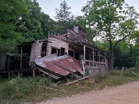 Rush is a neat place; more intact than most of the organic ghost towns we visit. Buildings are mostly standing, preserved by a local historical society. We obeyed the instructions not to get too close to the preserved spots and wandered around in the quickly fading light. Settled in the late 1800s after zinc ore was discovered in the area, the town quickly gained interest and a growing population, requiring more buildings and houses. It was a short-lived boom with the town starting to decline in the mid-1900s, and the buildings left to decompose. A fascinating story for evening reading about the Hicks family, who owned the main hotel in Rush. Now, only the walls and stairs are left.