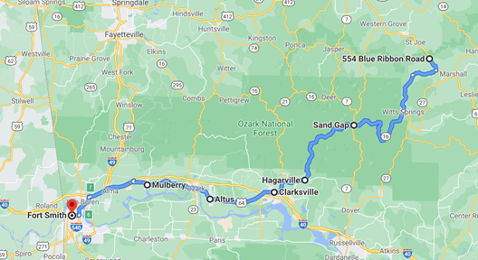 It was a nice ride and the perfect distance. We had partially paved roads in some areas, which is a nice break from rocky dirt. We stopped at a church for a break and enjoyed the quiet Arkansas countryside.